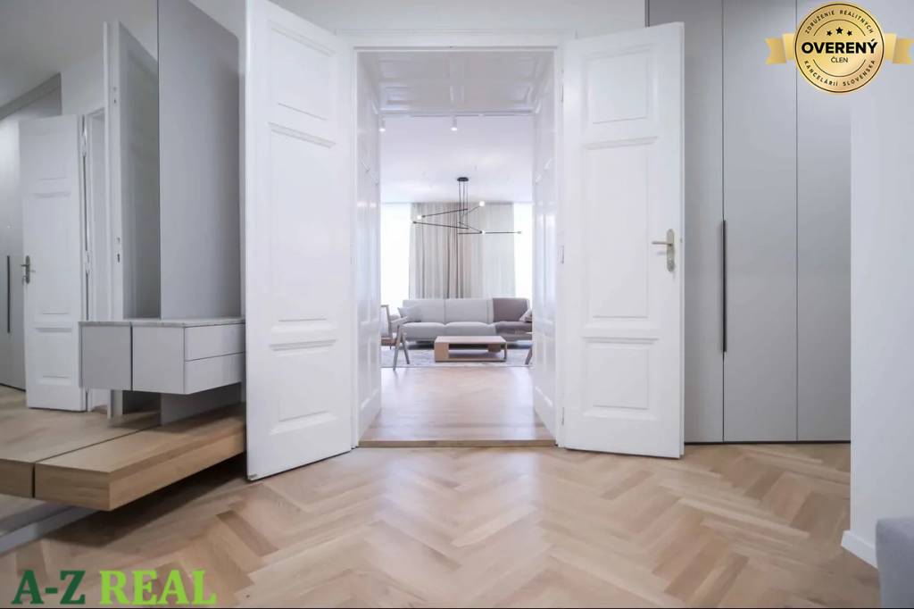 This spacious 118,7 m² apartment is located in the most desirable area of Bratislava, just steps away from shops, restaurants, and public transportation. Paid parking is available nearby at Saba Opera or Carlton garages. This location combines the charm of historic Bratislava with excellent access to all services and activities.